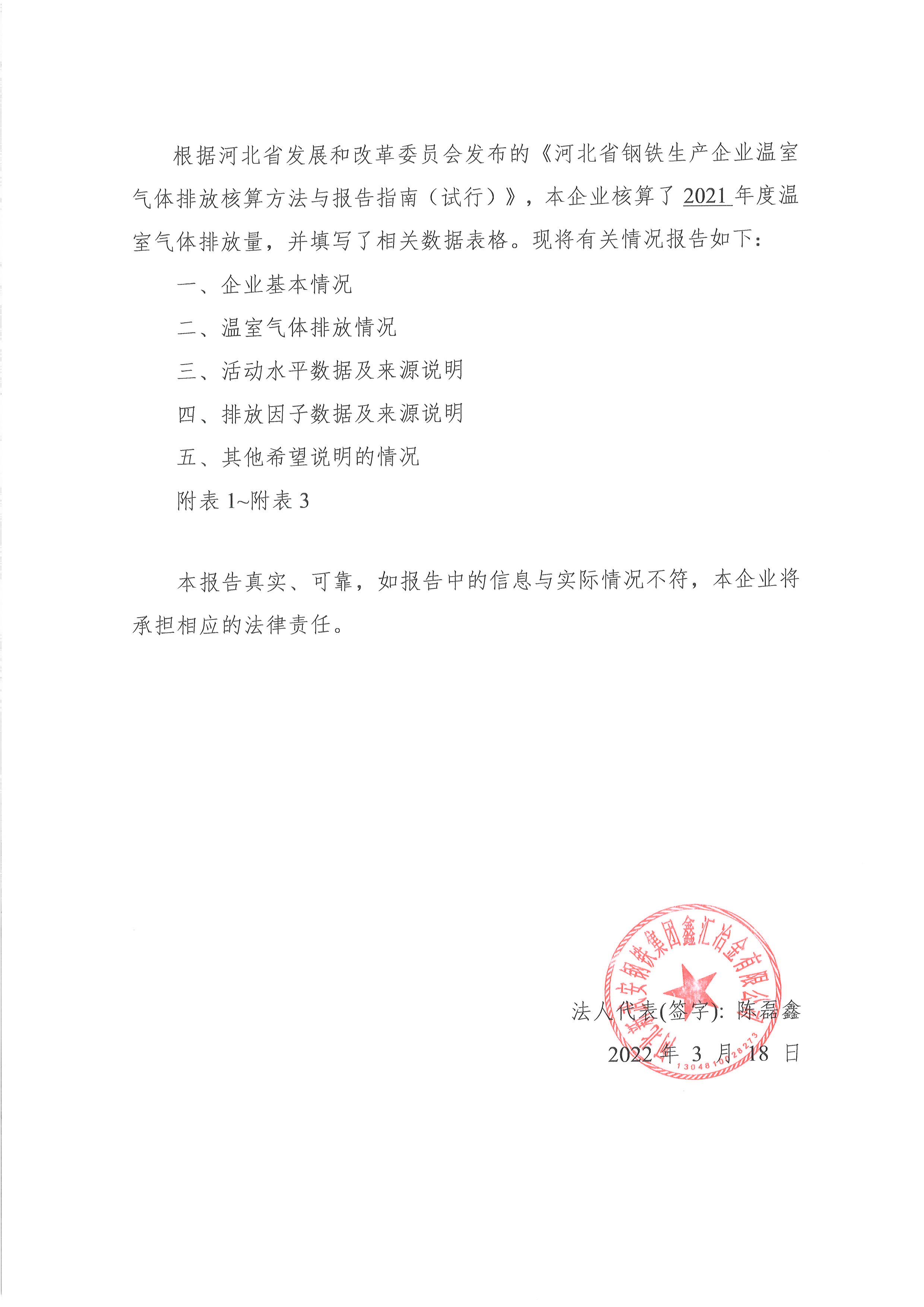 2021年河北新武安鋼鐵集團鑫匯冶金有限公司碳排放報告