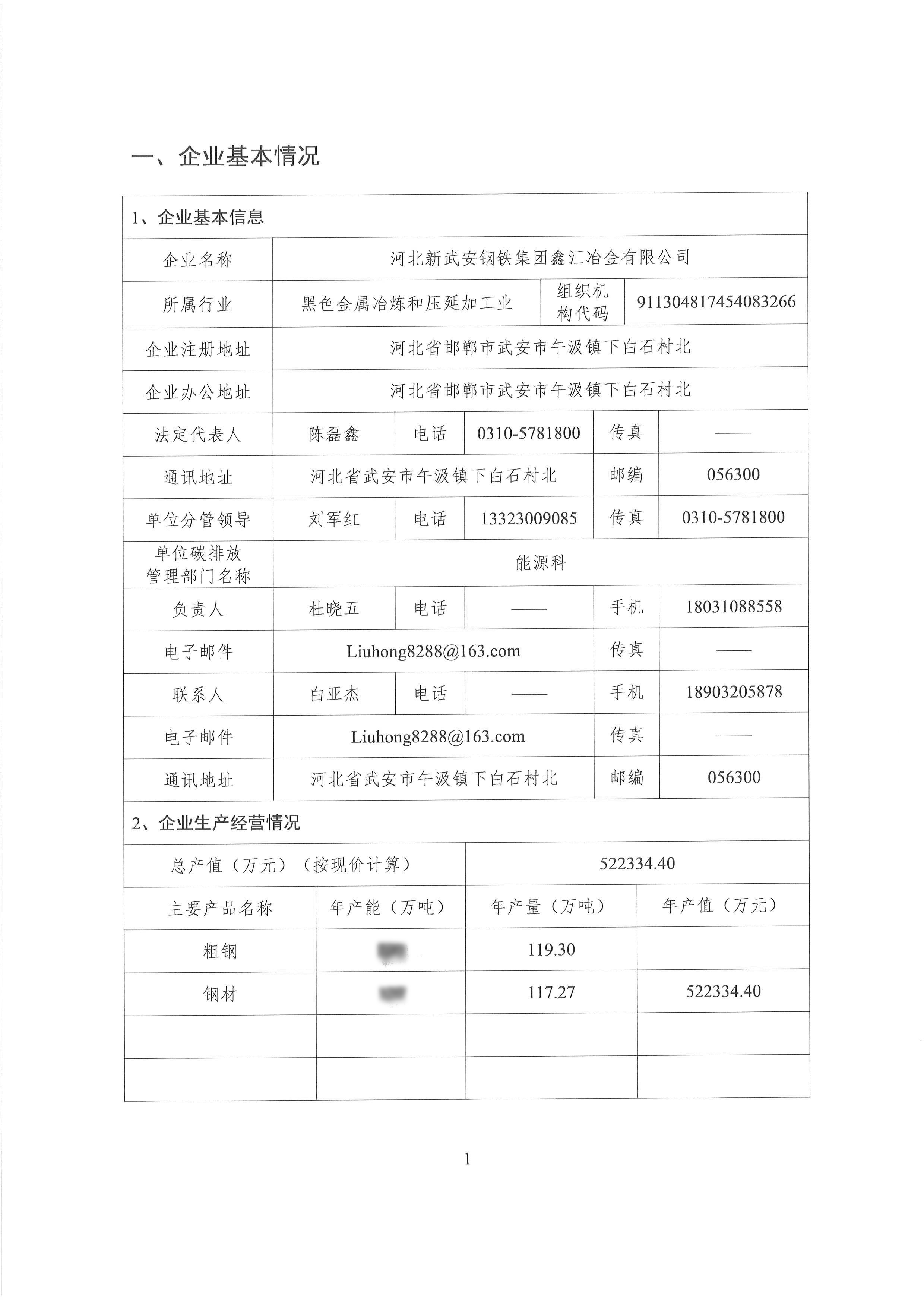 2022年河北新武安鋼鐵集團鑫匯冶金有限公司碳排放報告